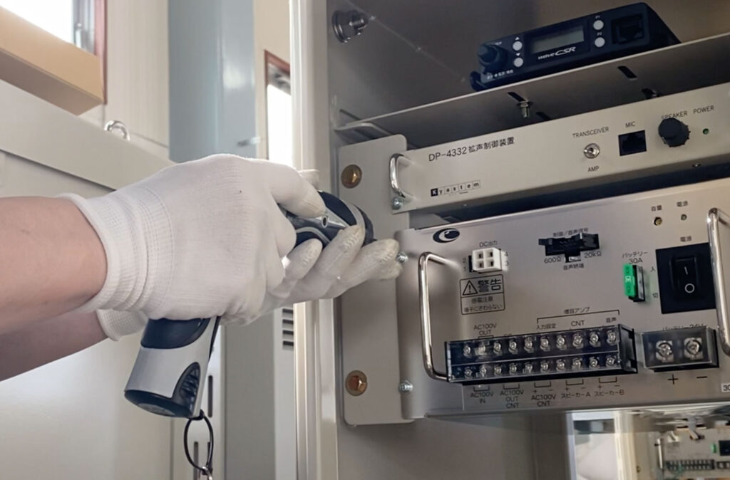 | 防災無線箱組立 | 筐体に無線機・アンプ・拡声制御装置を取付、接続用ケーブルも手加工し配線。(サイズ:450mm~650mm) ※筐体内に無線機取付、拡声制御装置取付、アンプ取付、ケーブル配線、無線機送信電力検査、アンプのAC・DC電圧検査、拡声制御装置ハンドマ イクの動作試験、外観検査等。 |